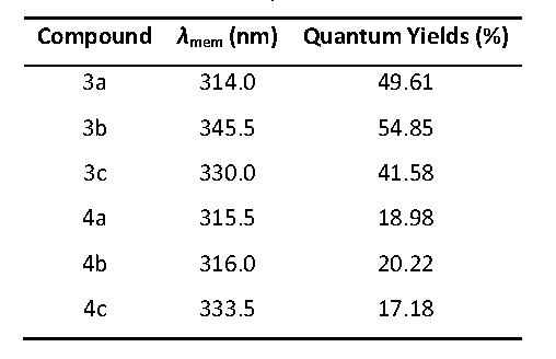 Table 2. Fluorescence parameters: emission maximum wavelength, λmem and fluorescence quantum yield, of compounds 3a–c and 4a–c in cyclohexane.